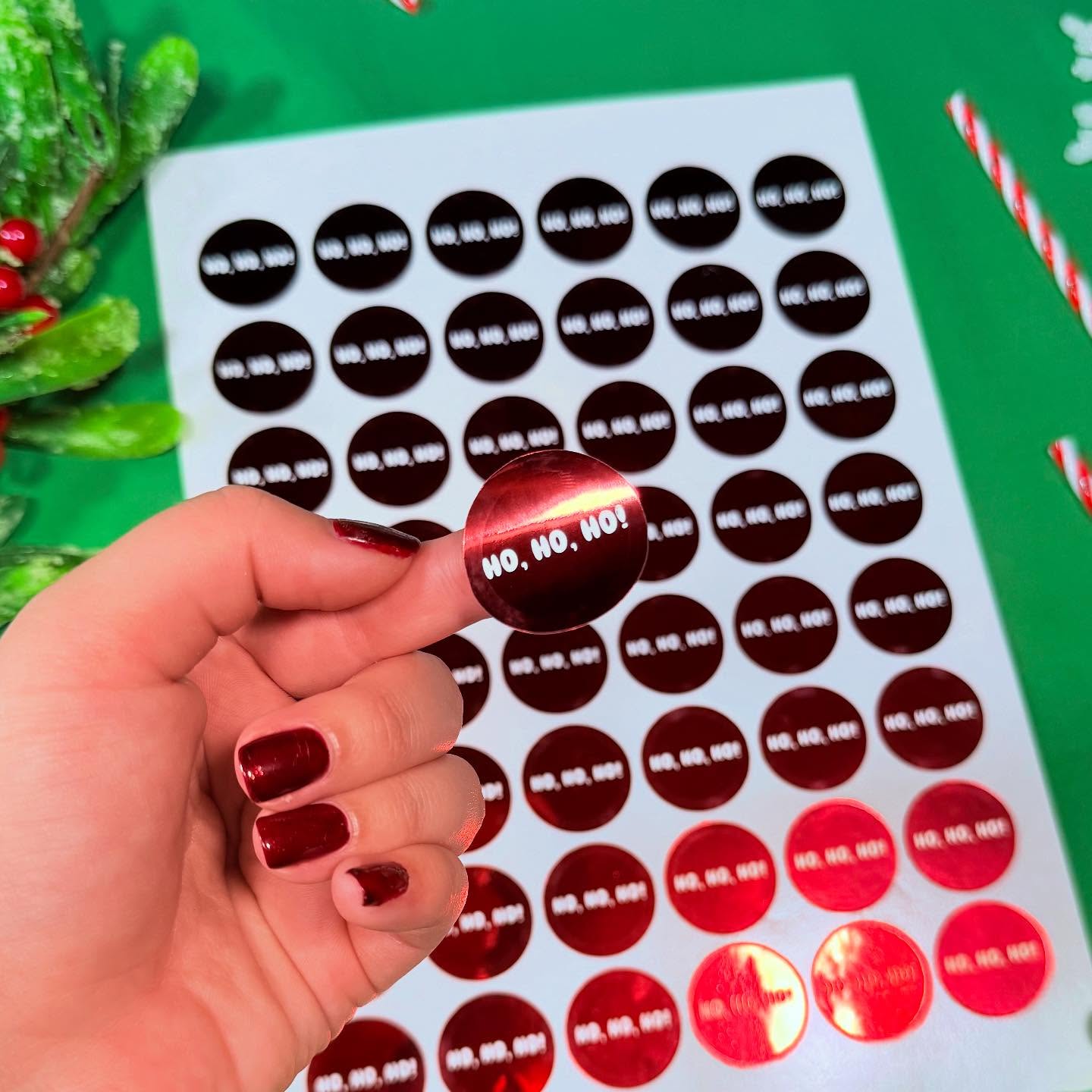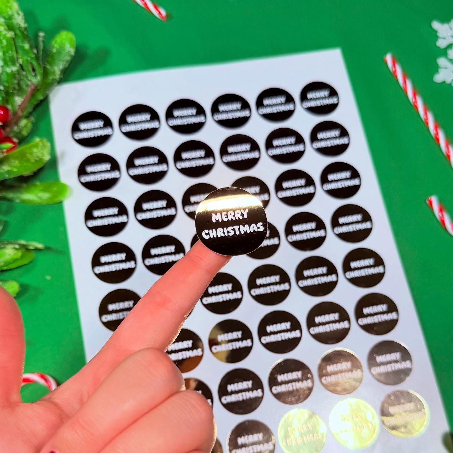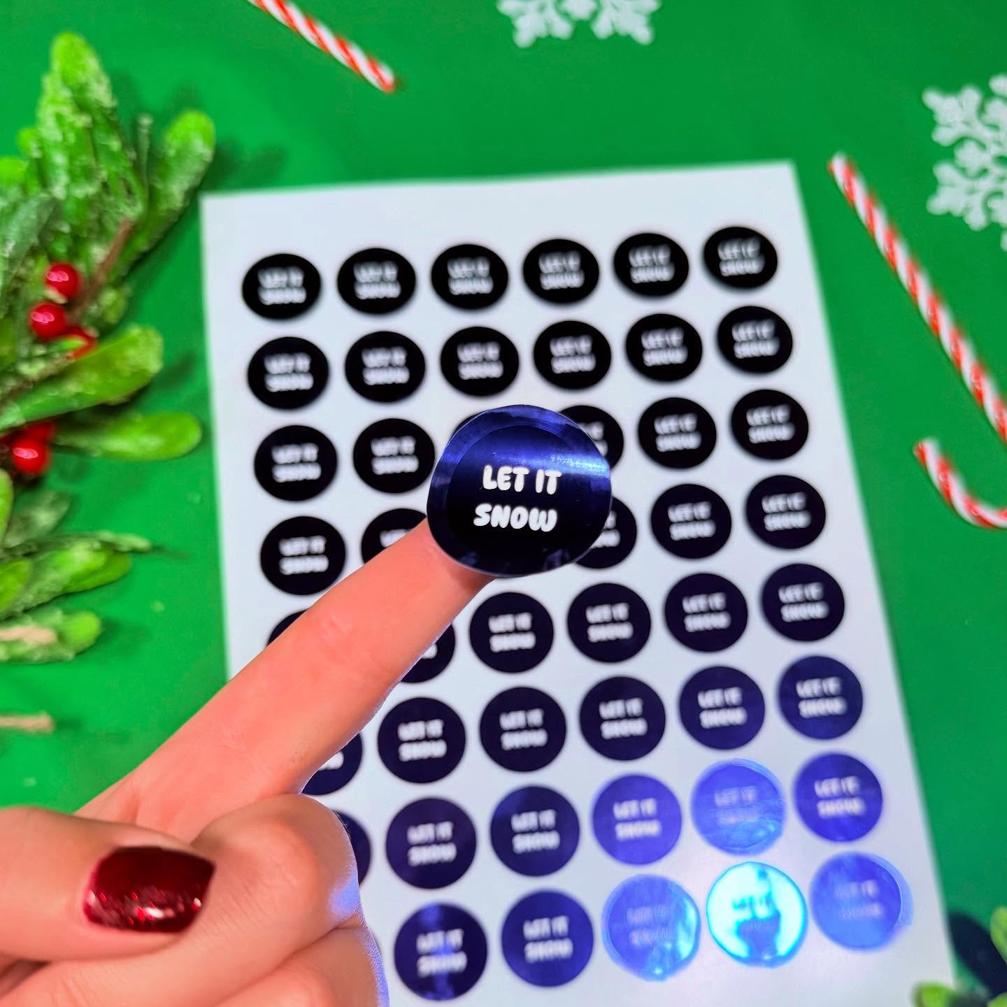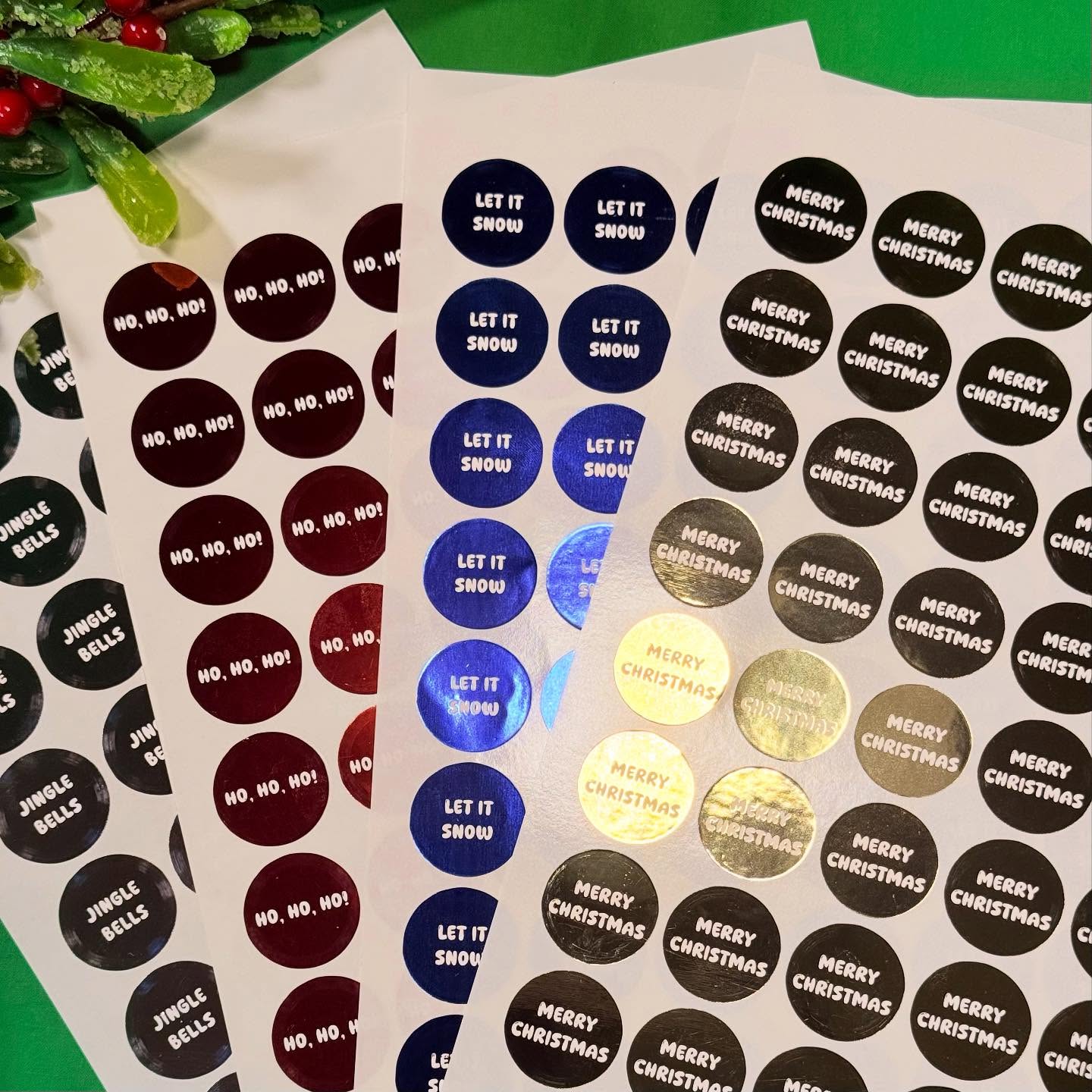 So much of the decor and merchandise around Christmas time is embellishes with an iconic Christmas phrase. We decided to implement these onto some foiled labels to really encapsulate the Christmas spirit. We opted to use our 30mm round labels and our
