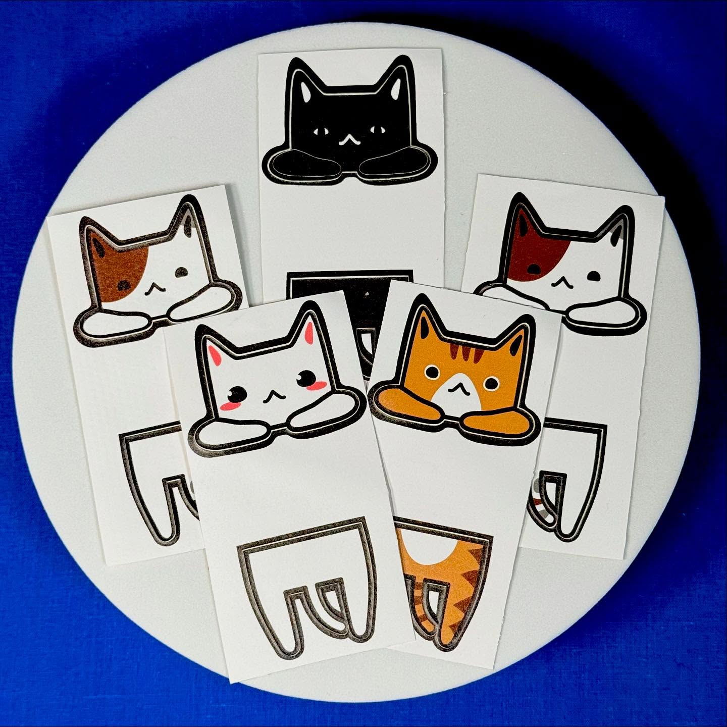 Just like many felines out there, these stickers are somewhat of an ancient relic of Flexi Labels as we have no idea how they came to be!! You could say the cat-sticker distribution system chose us...