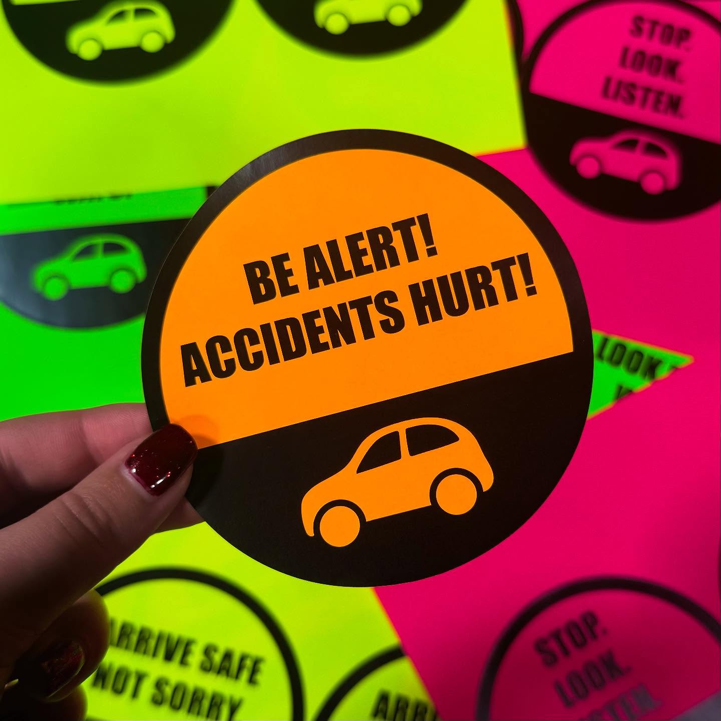 "BE ALERT! ACCIDENTS HURT!"